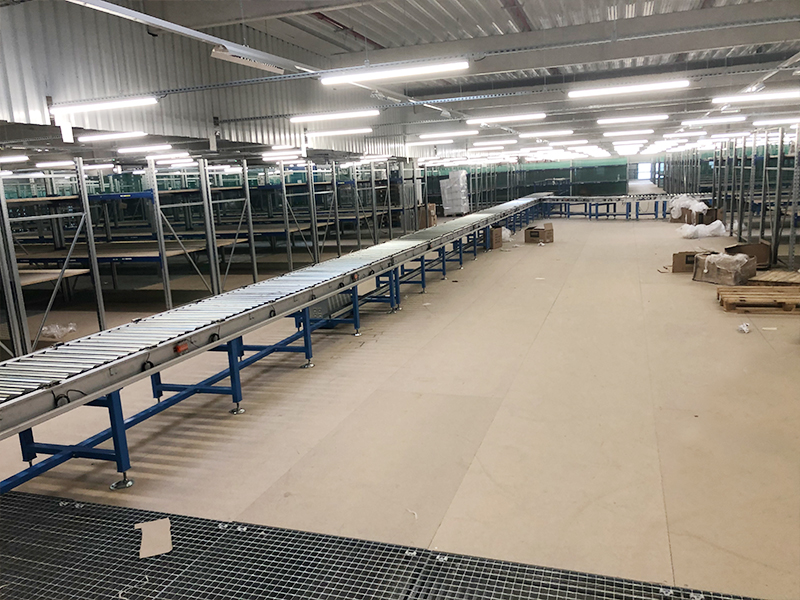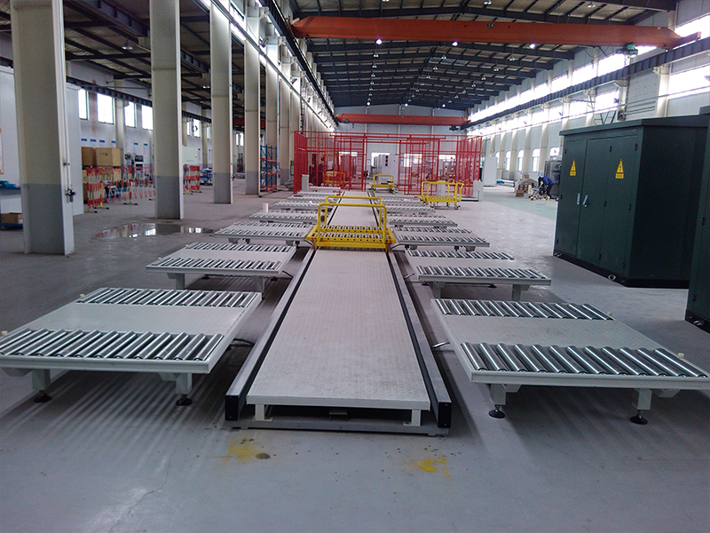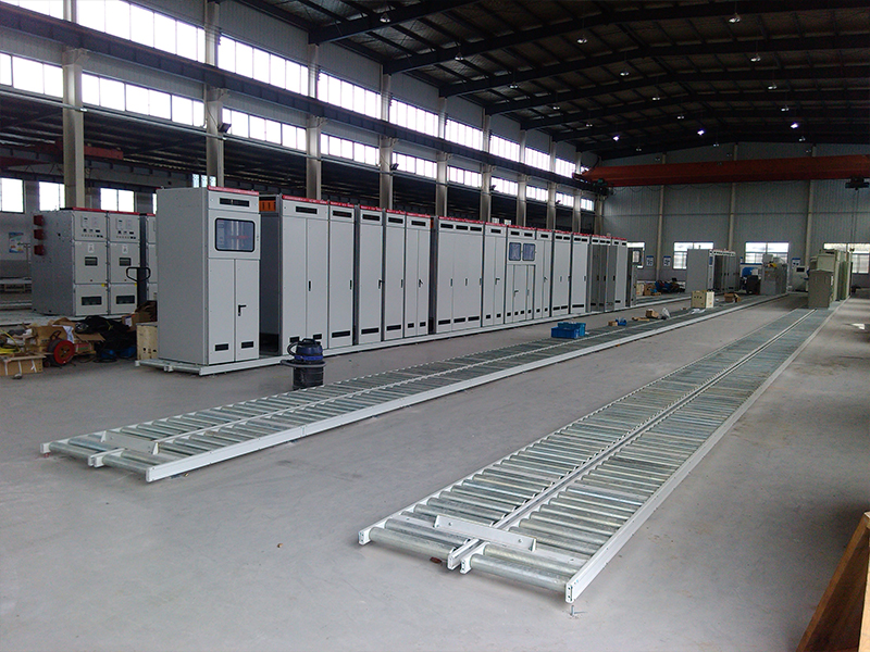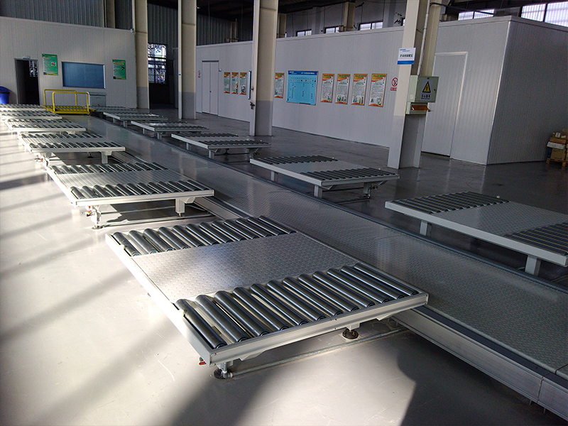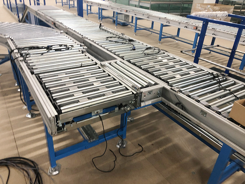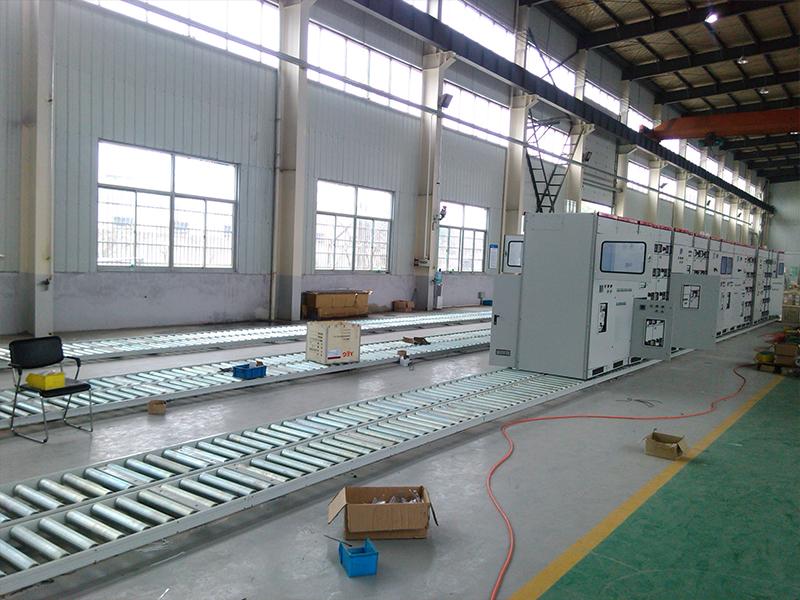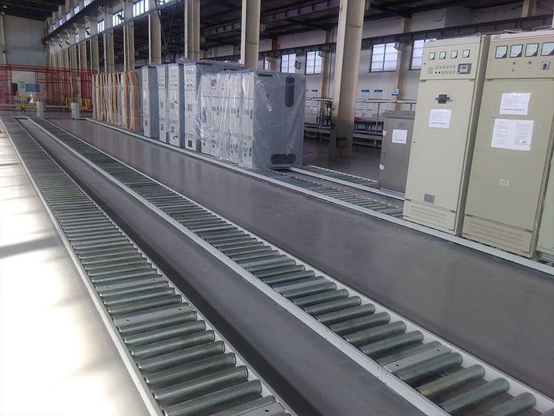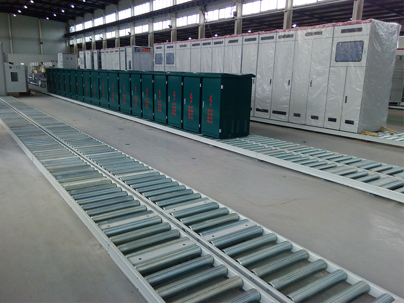 Den elektriske kabinettmonteringsgulvets rulletransportørlinje har en drevet fri rullemontering, preget av lav høyde, fleksibel bredde og høy belastningskapasitet. Det er egnet for montering av høye elektriske skap i en strømningsproduksjonslinje.