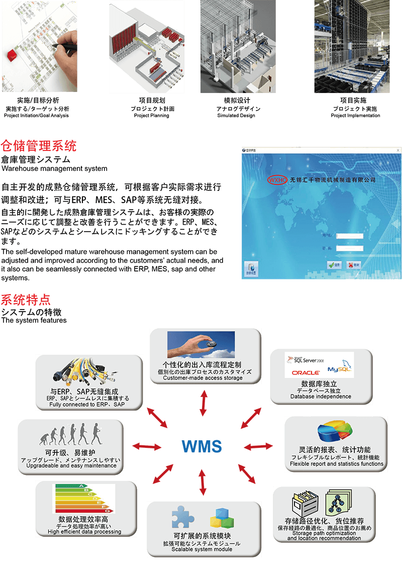 Sentralt i Wuxi Huiqians tilnærming er det avanserte lagerstyringssystemet (WMS), en fleksibel plattform som kan tilpasses for å imøtekomme de spesifikke behovene til hver kunde. Dette selvutviklede systemet integreres sømløst med ERP, MES, SAP og andre forretningsstyringsverktøy, noe som gir mulighet for sporing i sanntid, lagerkontroll og forbedret datasynlighet. Ved å tilby modulære funksjoner som inn-og-ut lagringsadministrasjon, systemvedlikehold og dataforespørsler, støtter WMS bedrifter i å håndtere alt fra grunnleggende lagerfunksjoner til mer komplekse logistikkoppgaver.