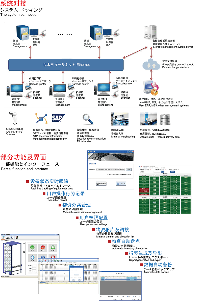 I hjertet av disse løsningene er selskapets modne, uavhengig utviklede Lagerstyringssystem (WMS). Dette avanserte systemet er ikke bare kraftig når det gjelder å håndtere kompleksitetene i moderne lager, men også fleksible. Det kan justeres og skaleres i henhold til de spesifikke kravene til klienter, og sikrer at den støtter både små operasjoner og store bedrifter. WMS integreres sømløst med andre forretningssystemer som ERP, MES og SAP, og tilbyr bedrifter en enhetlig plattform for å styre driften.