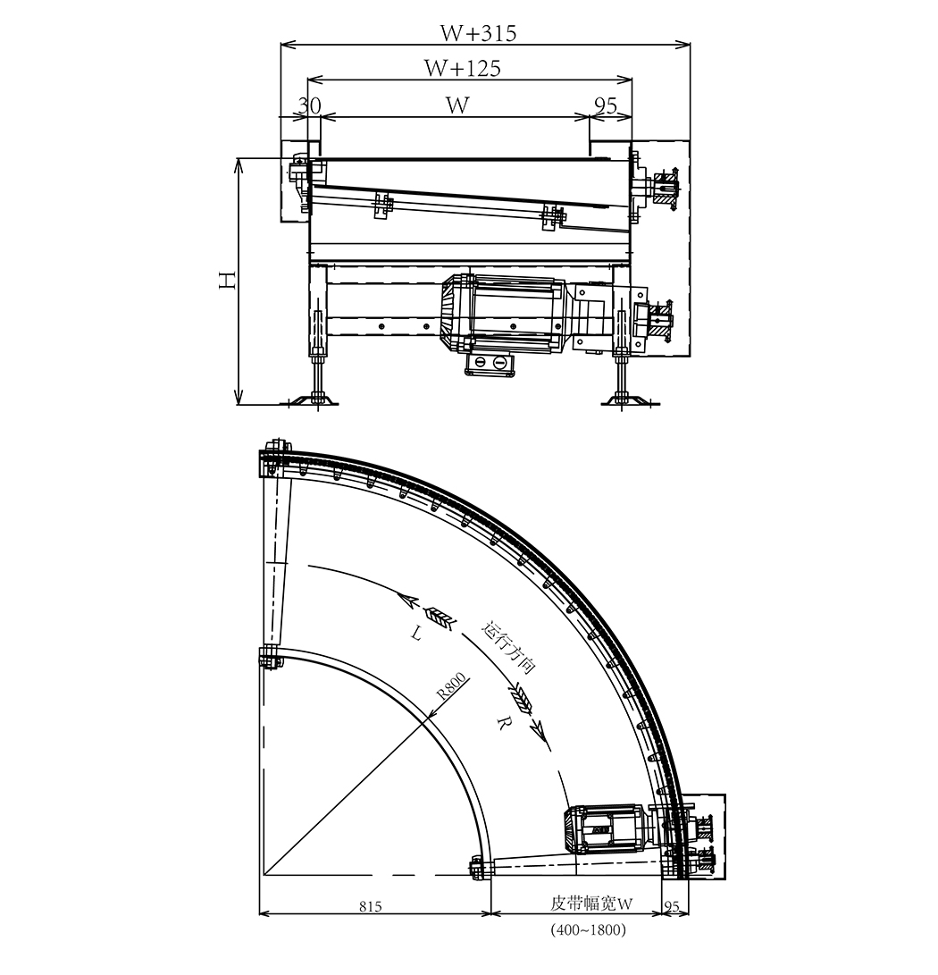 Drevet kilde Velg Styrke motorisert rulle, gjør drevet delhøyde 120 mm mulig. Vi kan produsere va...
