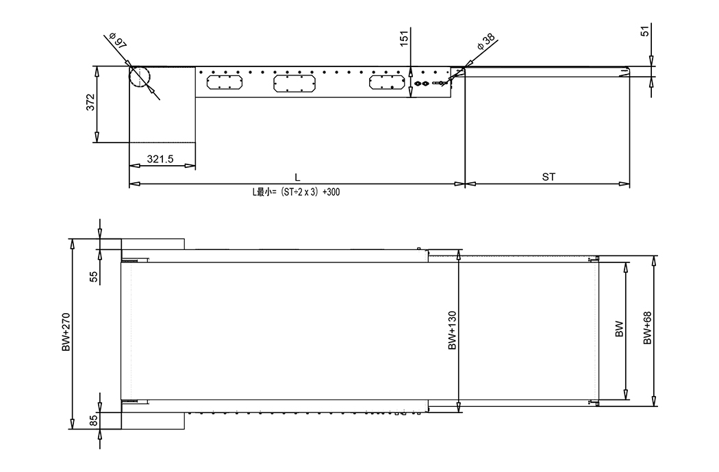 Faktisk dimensjon av beltet er innsnevret 5mm enn den oversvømte standardbelte; LF lengden på maskinen overstiger 4m innsnevret 10mm.