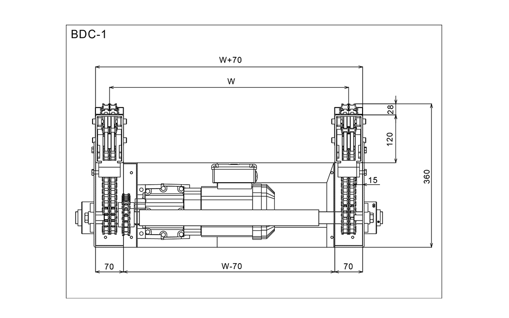 Kjedetransportøren brukes først og fremst til transport av paller og store totes. Standardkjedetransportøren fra Wuxi Huiqian bruker en 10b-2 dobbelt europeisk standard rullekjede, egnet for tunge belastninger fra 500 til 3000 kg.
