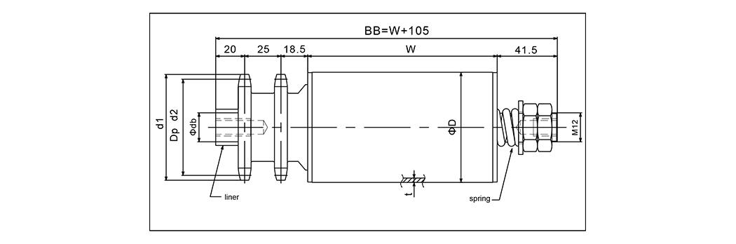 | Type | Rullestørrelse | Rullebredde | Rullemateriale | Peiling | Skaftdiameter | Foringstørrelse | Tannhjul | D1 | D2 |