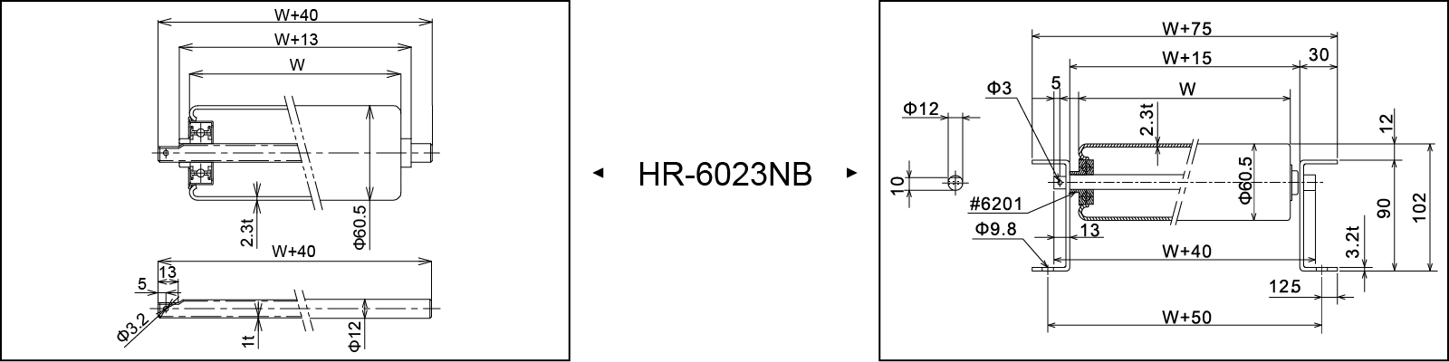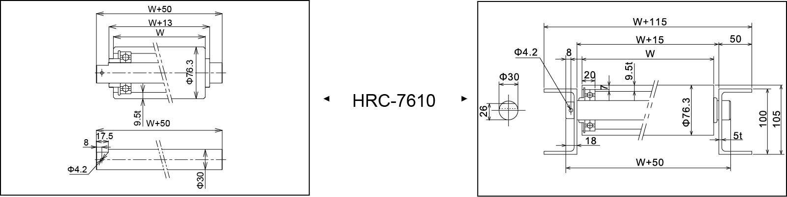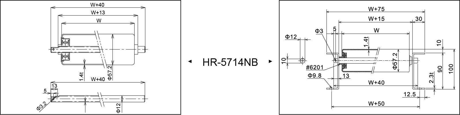 | Bredde på rullet w (mm) | 100 | 200 | 300 | 400 | 500 | 600 | 700 | |