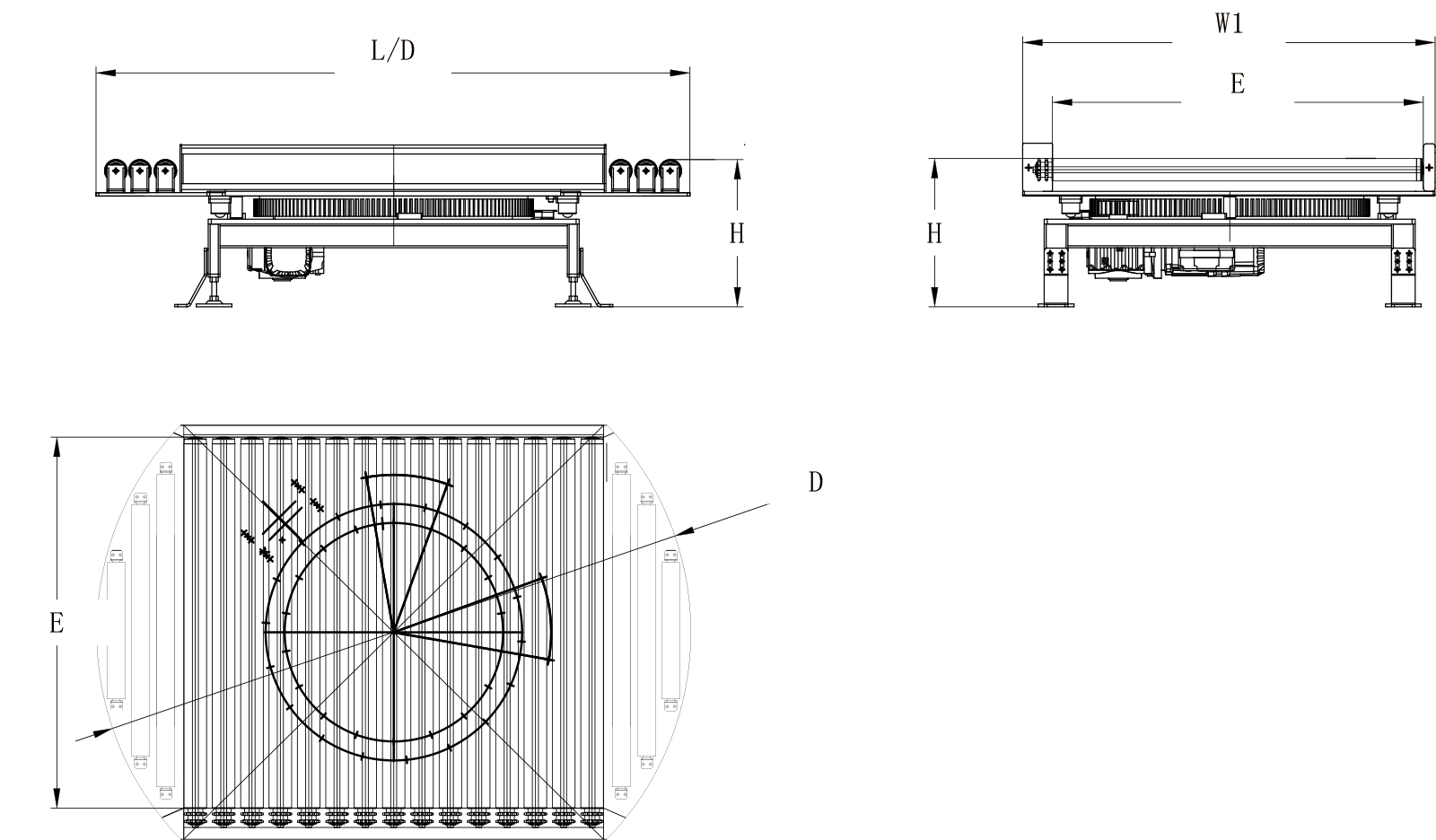 Transportørens roterende bord kan rotere 45 grader, 90 grader, 180 grader og 360 grader; Det er en spesiell transportapparat som installerer en transportør på en roterende ramme. I henhold til størrelsen og vekten på materialet, kan diameteren og lastbærende kapasiteten til det roterende bordet tilpasses; Transportdelen kan være en beltetransportør, rulletransportør, kjedetransportør eller et metallbord uten noen transportfunksjon.