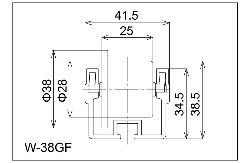 | W-38GF | 38 × 25 × 3 | 3 × 36,5L | 34,5 × 41,5 | 43.5 | 1000 ~ 3000 | 45 | 5 | ABS |