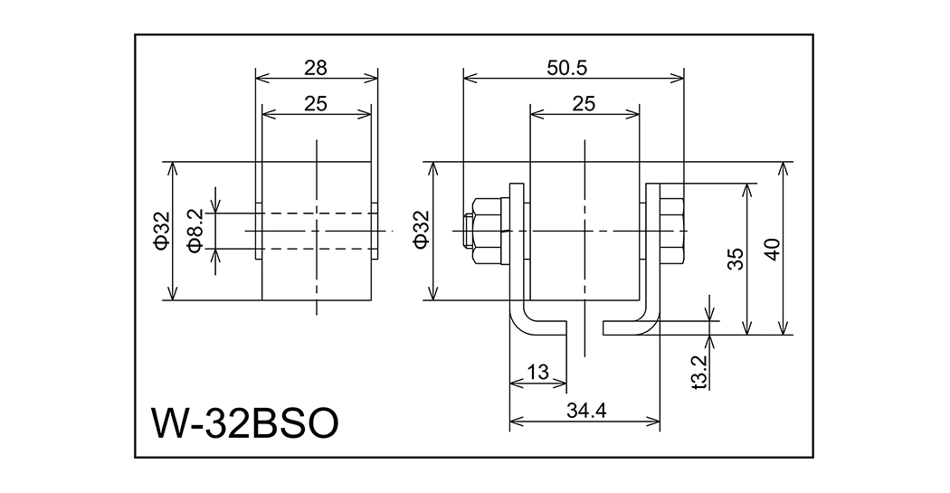 | W-32BSO | 32x25x8.2x28 | M8x45l | 35x34.4x13x50.5x3.2 | 40 | 1000 · 2000 · 3000 | 40 · 70 · 100 | 90 | A |