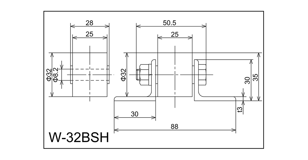 | W-32BSH | 32x25x8.2x28 | M8x45l | 30x88x30x50.5x3.0 | 35 | 1000 · 2000 · 3000 | 40 · 70 · 100 | 90 | L |