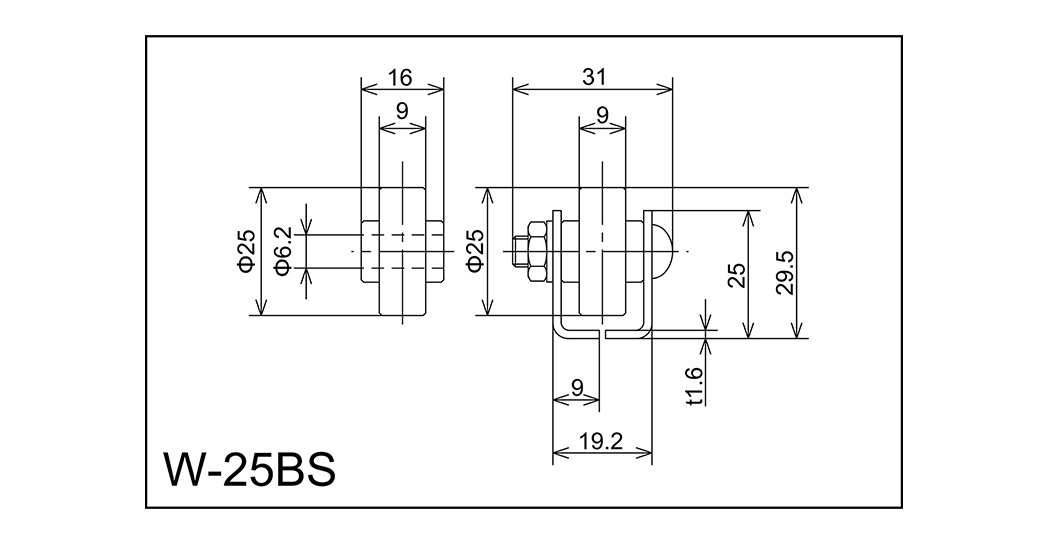 | W-25BS | 25x9x6.2x16 | M6x27L | 25x19.2x9x31x1.6 | 29.5 | 1000 · 1500 · 2000 | 30 · 35 | 30 | A |
