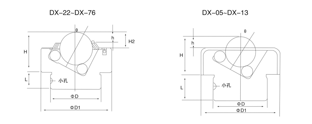 | Modus l | Numbe r | Hoved Ball | θ | H | H2 | h | L | D | D1 | off-center | (kg) Vekt | (kg) Lasting Kapasitet |