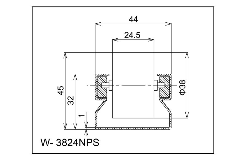 | W-3824NPS-H | 38 × 24,5 × 3 | 3 × 38i | 32 × 44 × 0,8 (1,0) | 47 | 1000 · 2000 · 3000 | 45 | 25 | Elektro galvanisert | ABS |