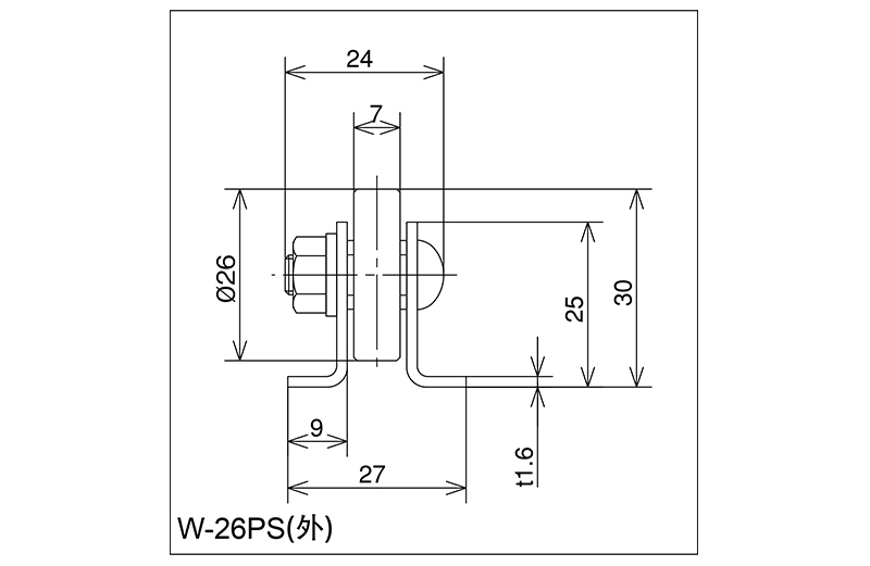 | W-26PS (utenfor) | 26 × 8 × 6 × 10 | M6 × 20L | 25 × 28 × 9 × 24 × 1.6 | 30 | 1000 · 1500 · 2000 | 30 · 35 | 30 | POM |