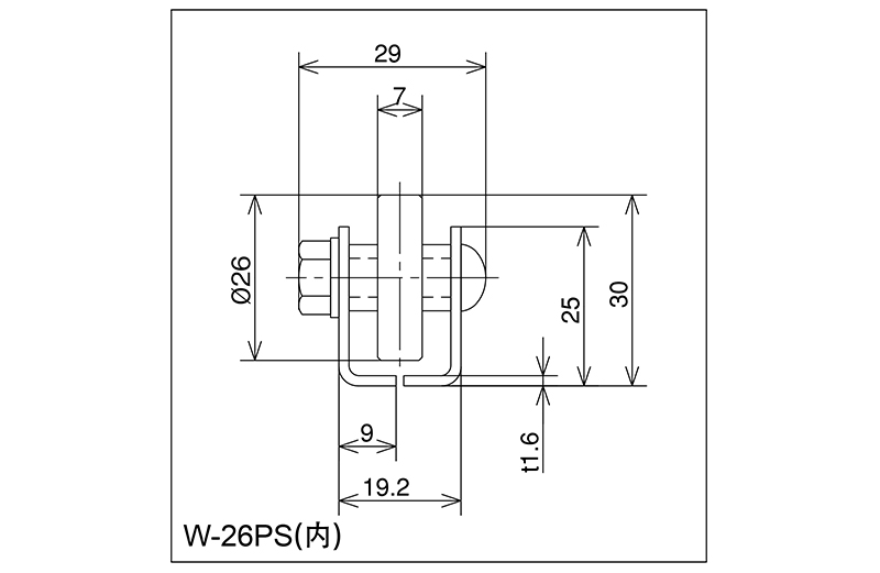| W-26PS (innen) | 26 × 8 × 6 × 16 | M6 × 25L | 25 × 19,2 × 9 × 29 × 1,6 | 30 | 1000 · 1500 · 2000 | 30 · 35 | 30 | POM |